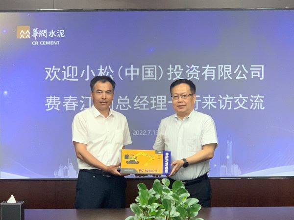 2022年7月13日,小松(中國)投資有限公司(以下簡稱:小松(中國))副總經(jīng)理費春江、PS本部長戴暉、大客戶綜合支援部長肖毅一行在廣東譽華工程機械有限公司(以下簡稱:廣東譽華)董事長朱鐸華、副董事長祝建良的陪同下,走訪了華潤水泥控股有限公司(以下簡稱:華潤水泥)。
