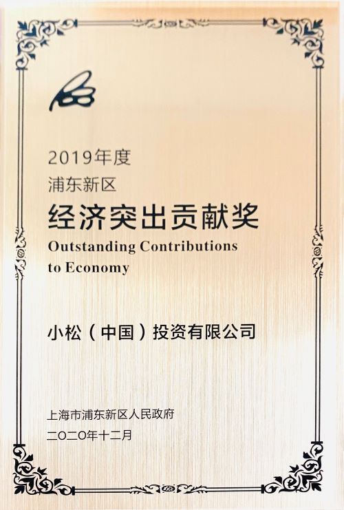 2020年12月8日,由上海市浦東新區(qū)人民政府主辦的“2019年度浦東新區(qū)經(jīng)濟(jì)突出貢獻(xiàn)企業(yè)表彰活動”在上海國際會議中心盛大舉行。會上,小松(中國)投資有限公司榮獲“經(jīng)濟(jì)突出貢獻(xiàn)獎”。