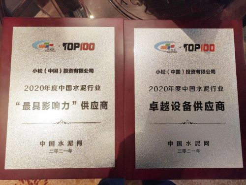 2021年4月20日-4月21日,由中國水泥網主辦的“2021中國水泥產業峰會暨TOP100頒獎典禮”在杭州召開。峰會以“同使命·謀創新·共發展”為主題,行業領導、技術專家、水泥企業、設備商代表近千余人參與了此次會議,深度探討當前水泥及相關行業發展態勢,共商行業高質量發展大計。小松(中國)投資有限公司(以下簡稱小松(中國))應邀參會并獲得組委會頒發的2020年度中國水泥行業“最具影響力供應商”獎和“卓越設備供應商”獎。
