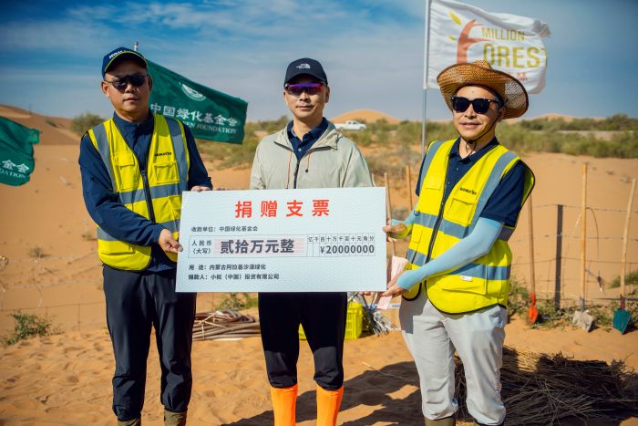此次活動不僅吸引了小松中國各集團公司志愿者們的積極參與,今年小松(中國)投資有限公司(以下簡稱:小松中國)董事長、總經理兼CEO費春江先生、小松機械制造(山東)有限公司(以下簡稱:小松山東)總經理張新先生與中國綠化基金會繆秘書長也共同參與了沙漠綠化活動,以實際行動彰顯對生態保護事業的堅定支持。